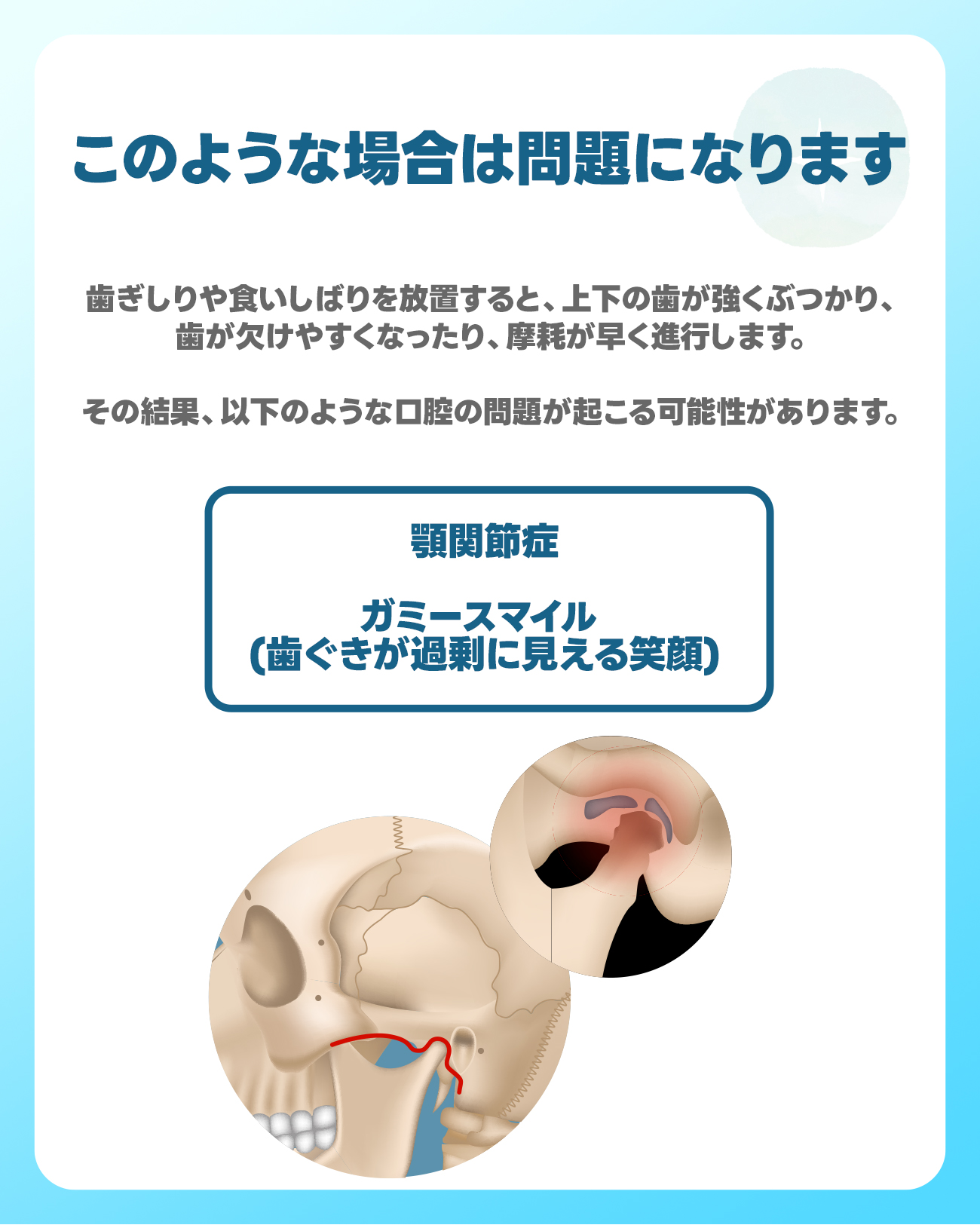 歯ぎしりや食いしばり、顎関節症など、