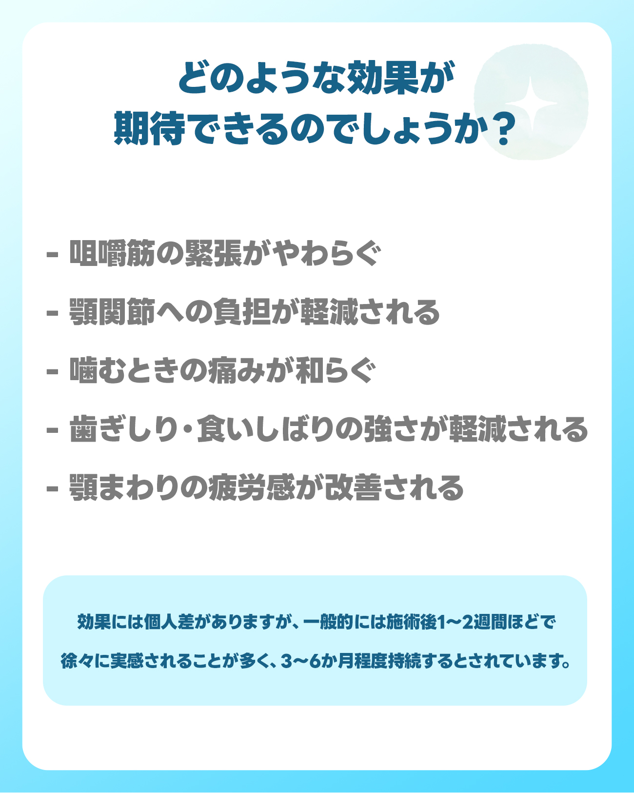– 咀嚼筋の緊張がやわらぐ